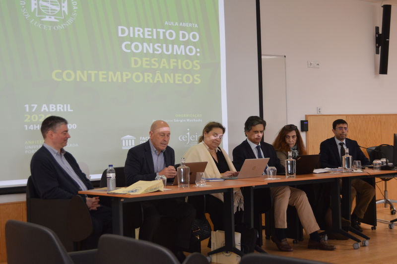 No dia 17 de abril do presente ano, decorreu no Anfiteatro 4, uma aula aberta no âmbito da unidade curricular de Direito do Consumo, subordinada ao tema “Direito do Consumo: Desafios Contemporâneos”. O evento foi organizado pela Faculdade de Direito e pelo CEJEIA, no âmbito do grupo de Investigação Jurídico-Económica e Ambiental, integrado na linha de investigação “Direito e Sociedade de Risco”, inserida no projeto “Desafios Contemporâneos para o Direito”, coordenado pelo Prof. Doutor Sérgio Machado, docente da referida unidade curricular.